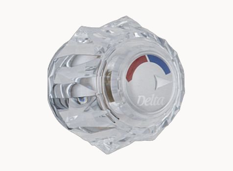 Delta's Less Handle Program allows you to choose your trim and handles to customize the look of your faucet in every room of the house. This clear handle includes a hot and cold graphic to indicate temperature mix.