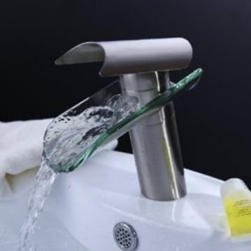 LightInTheBox Single Handle Centerset Waterfall Bathroom Undercounter Sink Faucet with Tempered Glass Spout, Brushed Nickel Reviews